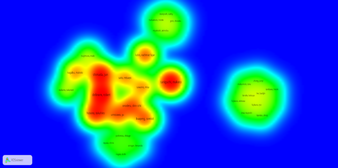 Density map of the papers based on the key words (Red: dense paper population, green: less dense). Dataset is available as